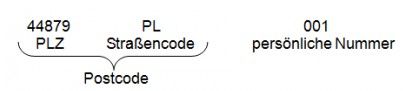 Zum Beispiel: Postleitzahl: 44879, Straßencode: PL, individuelle Nummer: 001 Die Losnummer lautet dann:
