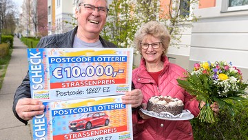 Herzlichen Glückwunsch in die Bundeshauptstadt! Der vierte Straßenpreis der April-Ziehung geht in den Postcode 12627 EZ nach Berlin-Hellersdorf. Hier räumt ein echter Glückspilz diese Woche richtig ab – Helmut freut sich an seinem Geburtstag gemeinsam mit seiner Frau Brigitte mit einem Los über 10.000 Euro und einen neuen BMW 1er.