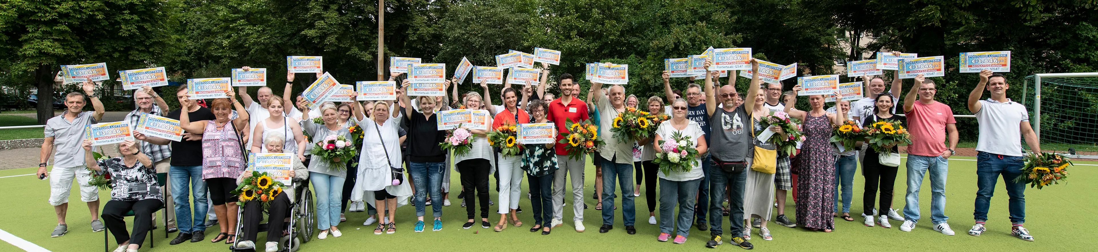 Bei der Postcode-Party auf dem Sportplatz am Treseburger Ufer feiern unsere Monatsgewinner gemeinsam ihr Glück! Dank Gabis Postcode gewinnen 77 Lose mit der dazugehörigen Postleitzahl automatisch mit. Die Glückspilze aus der 12347 teilen sich 300.000 Euro – das bedeutet 3.846 Euro pro Los! Auch der Bürgermeister von Neukölln, Herr Martin Hikel und Fritz Felgentreu, Mitglied des Deutschen Bundestages, gratulierten unseren Monatsgewinnern persönlich und freuten sich mit ihnen.
