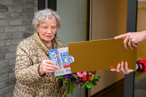 Unsere Gewinnerin ist sehr aufgeregt und freut sich schon bevor sie weiß, wie viel sie eigentlich gewinnt. Mit ausreichend Abstand und durch seine Maske geschützt reicht Felix Martha den Scheck im großen goldenen Umschlag. Martha traut ihren Augen kaum – 10.000 Euro! Was für eine Summe. "Ich bin glücklich. Ich hab noch nie in meinem Leben was gewonnen und dann gleich so viel.", schwärmt die sympathische Langenhagenerin, die auch spontan eine Idee hat, was sie mit einem Teil des Geldes anstellen möchte: "Da kriegen die Kinder ein schönes Weihnachtsgeschenk. Ich habe vier Stück!" Selbst ist die 85-Jährige äußerst bescheiden: "Ich bin eigentlich wunschlos glücklich. Ich würde vielleicht mal zur Kur fahren, wenn es wieder geht."