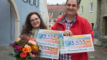 Wir besuchen außerdem unseren Postleitzahl-Gewinner Thomas in Harburg. Der 39-jährige nimmt mit zwei Losen teil und gewinnt so stattliche 10.000 Euro – gemeinsam mit seiner Frau jubelt er.