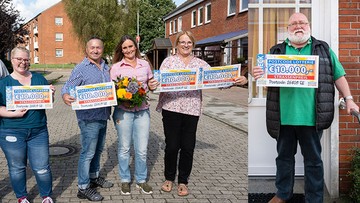 An der Nordseeküste am plattdeutschen Strand … spült der fünfte Straßenpreis der September-Ziehung 50.000 Euro an Land. Herzlichen Glückwunsch nach 26409 SE Wittmund. Hier freuen sich vier Glückspilze mit fünf Losen: die Nachbarn Heike, Karl und Stefan jubeln über jeweils 10.000 Euro und Karin nimmt zwei Schecks über insgesamt 20.000 Euro entgegen.