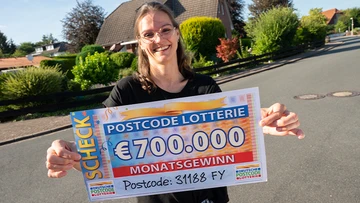 Im gezogenen Postcode 31188 FY nimmt Jessica mit drei Losen teil – sie jubelt somit über fantastische 700.000 Euro.