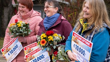Gleich drei Nachbarinnen gewinnen zusammen beim Straßenpreis in Kinding: Martina und Dorothea mit jeweils einem Los und Gertrud ist sogar mit zwei Losen dabei. Zusammen ziehen sie ihre Schecks aus den goldenen Umschlägen und sind überwältigt – denn insgesamt räumen sie großartige 40.000 Euro ab. Dorothea fasst ihr Glück als erstes zusammen: "Jetzt hat es mich getroffen und ich freue mich ganz doll." Da stimmt Martina zu: "Ich freue mich riesig."