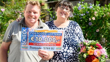 Mit einem breiten Grinsen im Gesicht streckt Felix unserem Gewinner einen goldenen Umschlag entgegen. Als der 59-Jährige den Scheck in Höhe von 10.000 Euro herauszieht, ist er sprachlos: "Wir müssen das erst einmal sacken lassen." Trotzdem wissen er und seine Frau Monika bereits, was sie mit einem Teil des Gewinns machen wollen: "Vielleicht fahren wir ein paar Tage weg, da fällt uns bestimmt noch etwas Schönes ein." Seit einem Jahr nimmt der Glückspilz bereits mit seinem Los teil und das Paar legt großen Wert auf die Unterstützung der gemeinnützigen Organisationen. "Ich freue mich natürlich auch, dass man durch den Gewinn unterstützen kann. Doppelte Freude quasi.", verrät uns Monika. Wir freuen uns mit und sagen: Herzlichen Glückwunsch!