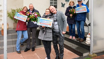 Als nächstes klingelt Felix nun bei Ellys Nachbarn Uwe. Der Maschinenschlosser ist ebenfalls außer sich vor Freude, als er den Scheck über 216.666 Euro sieht – er jubelt gemeinsam mit seiner Frau Kerstin. Auch Uwe hat spontan eine Idee, was er mit der Summe anstellen möchte: "Von dem Gewinn holen wir uns vielleicht ein neues Wohnmobil. Wir sind Camper, wir bleiben Camper." Für ihn waren nicht nur die täglichen Gewinnchancen ausschlaggebend, ein Los zu kaufen: "Ich nehme nicht nur für mich teil, ich will auch anderen damit helfen."