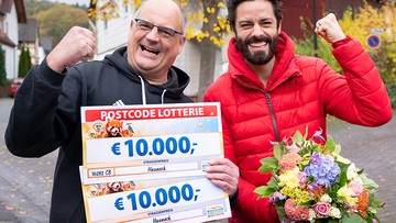 Seit Anfang des Jahres nimmt Stefan mit zwei Losen im gezogenen Postcode teil. Giuliano überreicht ihm damit zwei Schecks – das bedeutet großartige 20.000 Euro! Trotz des kühlen Wetters ist Stefan vor Aufregung warm, erzählt er uns. Der Ausbilder ist es im Alltag gewohnt, vor vielen Menschen zu sprechen und souverän aufzutreten, doch beim Anblick der großen Summe verschlägt es ihm die Sprache: "Pure Freude. […] Das ist schon was Außergewöhnliches." Den Gewinn möchte Stefan als leidenschaftlicher Hobbykoch in eine neue Küche investieren.