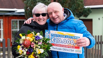 Während in weiten Teilen Deutschlands an diesem Wochenende die Sonne lacht, liegt im sächsischen Muldenhammer noch Schnee und kleine Flöckchen treiben umher – aber das macht gar nichts, da hier Gewinner Bodo gemeinsam mit seiner Frau Kerstin über den ersten Straßenpreis der März-Ziehung strahlt. Giuliano und unser Team in Rot haben sich auf den Weg gemacht, um den Glückspilz im Postcode 08262 BA zu überraschen – mit einem Scheck über 10.000 Euro!