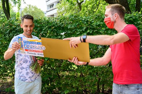 Im April 2017 überraschte unsere Botschafterin Katarina Witt im Bezirk Obergiesing-Fasangarten den Monatsgewinner Peter in seinem Postcode 81549 QY mit einem großen Scheck über 250.000 Euro. Mehr darüber erfahren Sie hier.