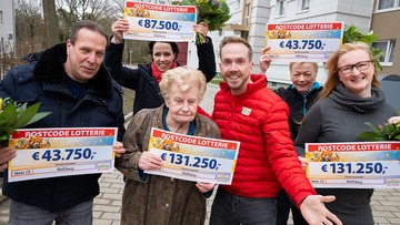 Im Postcode 38444 CX teilen sich neun Glückspilze mit insgesamt 16 Losen ganze 700.000 Euro. Das macht 43.750 Euro pro Los, bei zwei Losen sind das 87.500 Euro und alle, die mit drei Losen dabei sind, jubeln über 131.250 Euro.