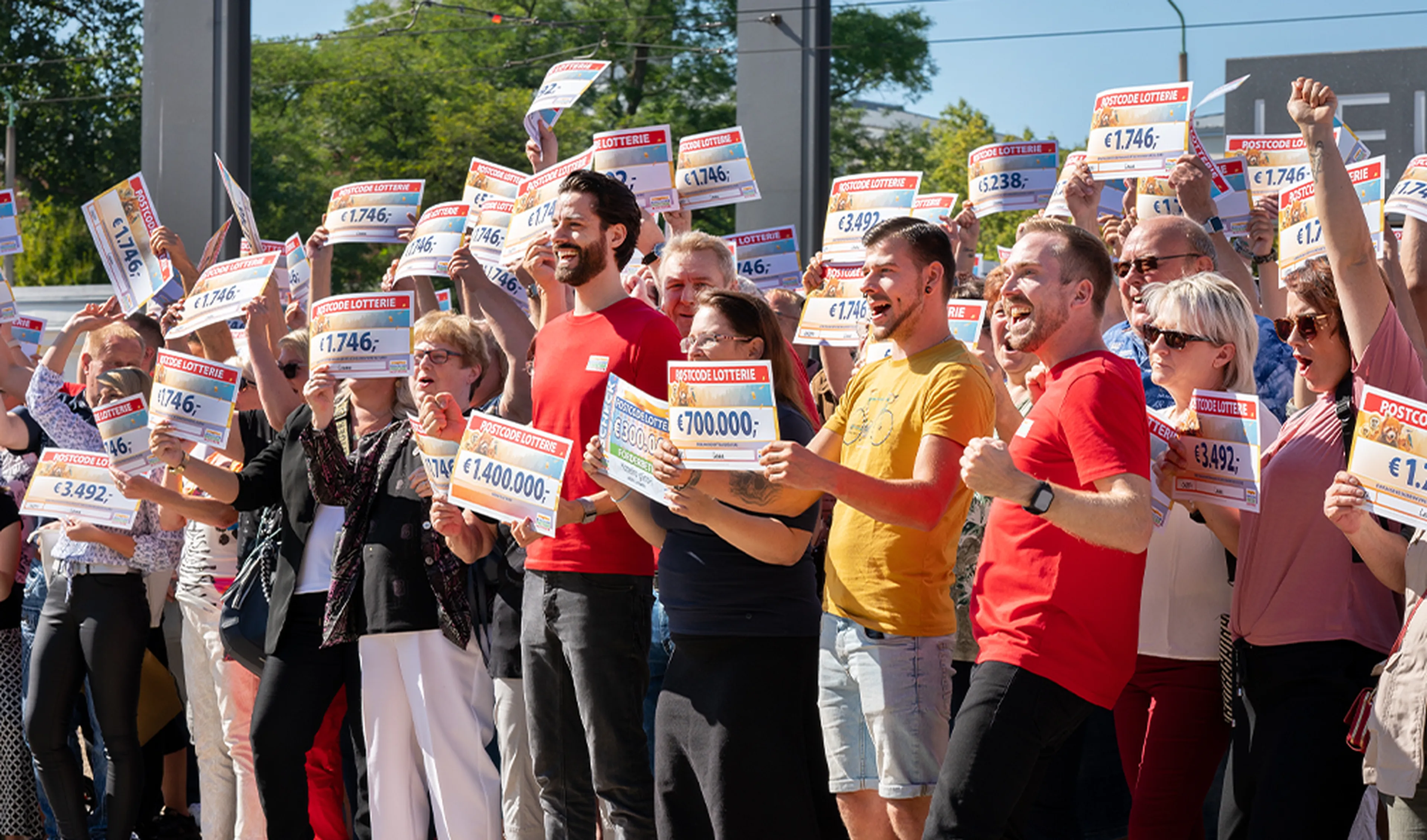 Getreu unserem Motto 'Zusammen gewinnen. Zusammen helfen.' gibt es an so einem Tag auch eine Überraschung für den guten Zweck. Die gemeinnützige Momelino GmbH fördert Kinder aus bildungsbenachteiligten Familien. Dank unserer Teilnehmerinnen und Teilnehmer konnten wir diesen wichtigen Postcode Effekt schon seit 2017 mit insgesamt sagenhaften 1.699.750 Euro unterstützen. Heute überreichen wir einen Scheck für ein aktuelles Projekt über 300.000 Euro.