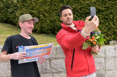 Unser Straßenpreis-Gewinner arbeitet im Messebau und ist daher nur selten zuhause – Darum springt sein Sohn für ihn ein und nimmt den Scheck von Giuliano entgegen. Er freut sich: Na, wunderbar!. Zack, schon sind 10.000 Euro mehr auf dem Konto! Herzlichen Glückwunsch ins Erzgebirge.