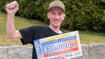 An diesem Samstag geht unser Straßenpreis nach Eibenstock in Sachsen. Im Postcode 08309 GG gewinnt Fred mit seinem Los 10.000 Euro! Giuliano überbringt die stolze Summe.