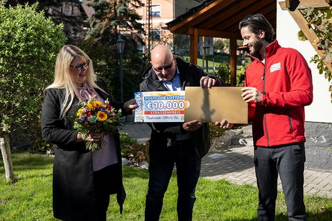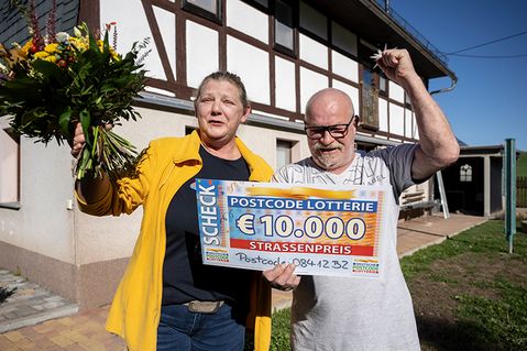 Herzlichen Glückwunsch zu 20.000 Euro in den Postcode 08412 BZ in Werdau! Hier landet der erste Straßenpreis der Oktober-Ziehung. Unsere beiden Teilnehmer freuen sich mit je einem Los über 10.000 Euro. Daniel und Stefan staunen nicht schlecht, als unser Team mit einem großen Scheck klingelt.