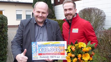 Eigentlich wollte Heiko nur soziale Projekte in seiner Nähe unterstützen – und jetzt das! Unser Moderator Felix überrascht den Niedersachsen mit einem großen Scheck im goldenen Umschlag, denn der erste Straßenpreis unserer Februar-Ziehung geht nach Lehrte in seinen Postcode 31275 GJ. Wir gratulieren Heiko zu 10.000 Euro!