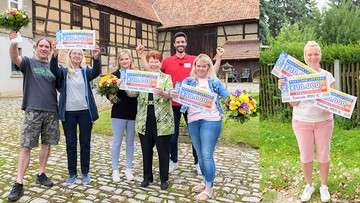 Last but not least überrascht Giuliano Straßenpreis-Gewinnerin Evelin. Sie ist überglücklich, als sie den Betrag auf dem Scheck sieht: "Ich habe gerade 10.000 Euro gewonnen! Das müsst ihr erstmal nachmachen." Giuliano erkundigt sich, was sie mit ihrem Gewinn plant. Wie es scheint, hat sie gleich einige Baustellen an dem historischen Bauernhof, auf dem sie lebt, im Sinn: "Es gibt schon ein paar Probleme." Evelin lacht fröhlich und korrigiert sich: "Problemchen! Das Geld kriegen wir schon unter!" Die 87-Jährige freut sich aber nicht nur über die 10.000 Euro, sondern auch über den Besuch unseres Teams: "Lauter schöne junge Männer!"