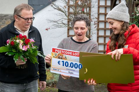 Happy in Hagen lautet die Devise im Postcode 58089 DC, denn hier freuen sich zwei Teilnehmende über fabelhafte 10.000 Euro pro Los. Julia macht sich auf den Weg, um die Glückspilze persönlich zu überraschen – mit einer Menge goldener Umschläge im Gepäck.