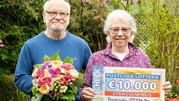 Als Feodora den großen Scheck hervorzieht und sieht, dass sie 10.000 Euro gewinnt, ist sie überwältigt: "Wahnsinn! Mehr kann ich dazu nicht sagen." Mit ihr hat es einen echten Glückspilz getroffen – die 72-Jährige verrät uns: "Vier Mal habe ich jetzt gewonnen. Zwei Mail 10 Euro, das dritte mal 2.412 Euro und jetzt das hier!"