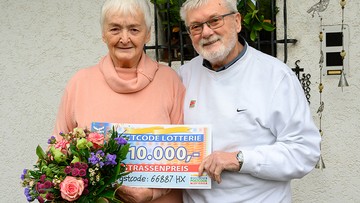 Beim zweiten Straßenpreis der Dezember-Ziehung ist das Losglück auf den Postcode 66887 HX gefallen. In Welchweiler in Rheinland-Pfalz gewinnt Anja 10.000 Euro! Unsere Gewinnerin selbst muss allerdings arbeiten, darum nehmen ihre Eltern Martha und Egon den Scheck entgegen.