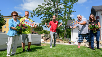 Dann zieht unser Team ein Häuschen weiter, um Nachbarn Andreas zu überraschen, denn der nimmt ebenfalls im Postcode 83104 DQ teil. Der 50-Jährige Familienvater weiß gar nicht wie im geschieht, als er seinen Scheck aus dem goldenen Umschlag zieht: "Ich gewinne gerade einfach mal 10.000 Euro. Wahnsinn." Der Ausbilder im Handwerk nimmt bereits seit zwei Jahren an unserer Lotterie teil und freut sich riesig. Er weiß auch schon, was er mit seinem Gewinn anstellen möchte: "Wir brauchen ein neues Fahrzeug und müssen den Garten in Schuss bringen." Dann wünschen wir gute Fahrt und eine schöne Zeit im heimischen Garten.