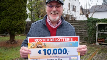 Aufgeregt nimmt unser glücklicher Gewinner Damian unser Team in Empfang. Als er dann die Gewinnsumme sieht, kann er es kaum glauben – mit 10.000 Euro hat er nicht gerechnet. Für den 68-Jährigen ist die Überraschung besonders groß, denn er hat schlicht vergessen, dass er bei uns teilnimmt. Umso freudiger plant er jetzt, was er mit dem Straßenpreis machen möchte – es soll zum Golf spielen nach Malaga gehen. Abschließend hat er für seine Nachbarinnen und Nachbarn, die noch kein Los haben, eine passende Empfehlung: mitmachen und den guten Zweck unterstützen.