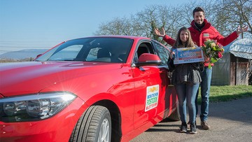 Giuliano fragt Sophie: "Was ist jetzt die größere Überraschung, der Scheck oder das Auto?" "Das Auto, auf jeden Fall! Das ist die größte Überraschung überhaupt, weil es einfach gerade super passt. Und ums Tanken muss ich mir jetzt auch keinen Gedanken mehr machen.", sprudelt es aus der jungen Plankstädterin. Außer den Spritkosten hat sie noch keine Pläne mit ihrem Gewinn: "Vielleicht aufs Konto packen und dann noch in den Urlaub fahren. Aber für ein Auto brauche ich es ja nun nicht mehr ausgeben."