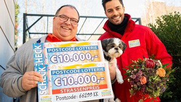 Unser Team um Giuliano macht sich auf den Weg ins Saarland. Im Postcode 66299 KK in Friedrichsthal jubelt Jens über 20.000 Euro, denn der dritte Straßenpreis im November ist hier gelandet. "Weihnachten kann kommen!", ruft unser Gewinner als er den zweiten Scheck aus dem goldenen Umschlag zieht. Wir gratulieren ganz herzlich!