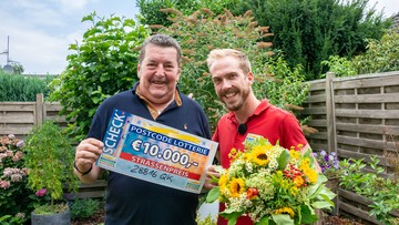 Moderator Felix überrascht unseren Straßenpreis Gewinner mit seinen Scheck im goldenen Umschlag. Und da staunt er nicht schlecht: Wir gratulieren Peter aus Stuhr zum dritten Straßenpreis im August. Sein Postcode 28816 QK bringt ihm Glück und beschert dem Niedersachsen 10.000 Euro.