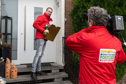 Eigentlich erwartet Marc einen Samstag wie jeden anderen. "Wetter okay. Naja. Gucken wir mal, wie wir den Tag rumkriegen – und dann…" – dann steht tatsächlich Felix mit drei großen Schecks in goldenen Umschlägen vor der Haustür des Speditionskaufmanns, denn Marcs Postcode 47475 CT Kamp-Lintfort räumt den dritten Straßenpreis der Dezember-Ziehung ab.