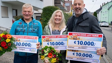 Im Postcode 70378 KE verläuft der Wochenstart für unsere Teilnehmerinnen und Teilnehmer ganz fantastisch. Denn hier in Stuttgart landen heute insgesamt 40.000 Euro. Beatrice hat sich mit großen Schecks und Blumen im Gepäck auf den Weg nach Baden-Württemberg gemacht. Wir gratulieren Theodor zu 10.000 Euro und seinem Nachbarn Roberto zu sagenhaften 30.000 Euro!
