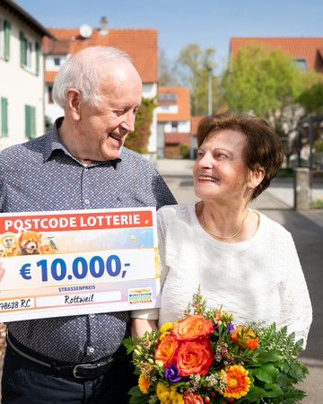 Es klingelt an der Tür und das Postcode Team in roten Jacken steht bereit. Die beiden Glückspilze Ernst und Ingeborg empfangen uns herzlich und sind aufgeregt, was sie nun erwartet. Als sie dann sehen, dass sie um 10.000 Euro reicher sind, können beide ihren Augen kaum trauen: "Oh, das ist super!", freut sich Ernst. Einen Plan, was das Paar mit dem Gewinn anfängt, gibt es schon: eine Reise an ihren Lieblingsort, die Blumeninsel Madeira. Hier waren sie schon unzählige Male und haben mittlerweile tolle Freundschaften geknüpft. "Aber auch die Enkel werden etwas vom Gewinn abbekommen“" verrät uns Ernst im Gespräch.