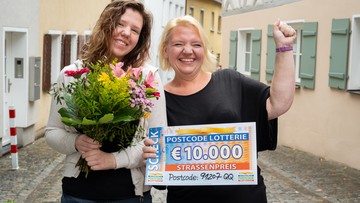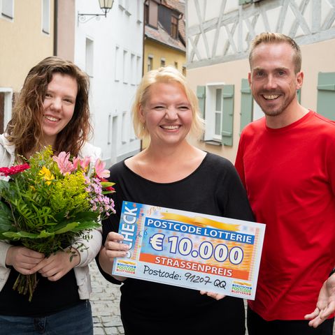 Der dritte Straßenpreis im August landet im Postcode 91207 QQ. Felix packt einen großen Umschlag ein und macht sich damit auf den Weg nach Lauf a. d. Pegnitz in Bayern. Hier freut sich ein Glückspilz über satte 10.000 Euro – da unser Gewinner nicht persönlich vor Ort sein kann, vertritt ihn seine Familie.