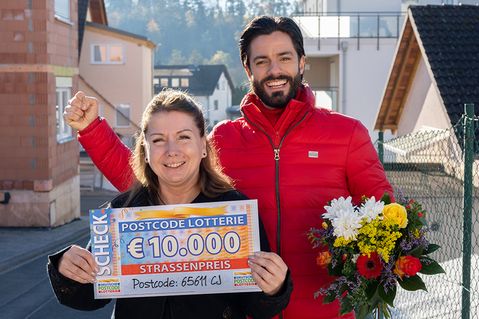 Herzlichen Glückwunsch zum dritten Straßenpreis der November-Ziehung an den Postcode 65611 CJ. Nicole aus Brechen jubelt dank ihres Loses über 10.000 Euro. Unser Team hat sich persönlich auf den Weg gemacht, um unsere Gewinnerin zu überraschen!