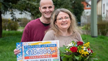 "Super!" Viel mehr bringt unser dritter Straßenpreis-Gewinner der März-Ziehung nicht heraus als er sieht, was er gewinnt. Ronny und seine Frau Sandra freuen sich im Postcode 66606 EJ in St. Wendel über 10.000 Euro. Sie beschreibt den Moment: "Das kommt so unverhofft – einfach Wahnsinn!"