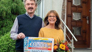 Am dritten Samstag im Oktober gibt es im Postcode 32120 RU allen Grund zu jubeln. Der Straßenpreis geht nach Hiddenhausen – und das bedeutet 10.000 Euro pro Los. Felix und unser Team überraschen Wolfgang und seine Frau Ingrid mit einem großen Scheck.
