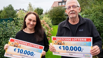 Weiter geht es für unser Team zu Bernhard und seiner Frau Ulrike. Im Gegensatz zu seiner Nachbarin ist er erst seit Februar dabei – und schon klingeln wir mit einem Straßenpreis an der Tür. 10.000 Euro! Das Ehepaar ist überglücklich. Ulrike sagt: “Wir haben noch nie was gewonnen. Und jetzt gleich so `ne Summe. Toll!” Felix erkundigt sich, welche drei Dinge, unserem 66-jährigen Glückspilz bei diesem Gewinn als erstes durch den Kopf gehen. Bernhard überlegt: “Anzahlung fürs neue Auto. Reisen – und was Drittes weiß ich spontan nicht!” Aber was für ein Auto es werden soll, ist gleich klar: “Mercedes – wir müssen einen Wohnwagen ziehen.” Ulrike strahlt: “Man rechnet ja eigentlich praktisch nie damit, dass man was gewinnt. Und jetzt gleich das erste Mal und so schnell – toll!” Zur Teilnahme überzeugt hatte, die beiden, dass mindestens 30 Prozent jedes Losbeitrags bei der Postcode Lotterie an soziale und grüne Projekte gehen. “Der gute Zweck war uns besonders wichtig!”