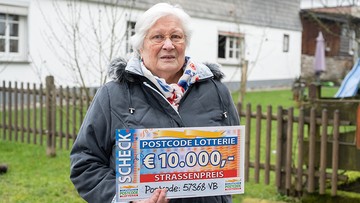 Giuliano erkundigt sich, wie die 81-Jährige zu ihrem Los kam. Roswitha meint: "Was da im Fernsehen mal gezeigt wurde, wenn die Leute alle was gewonnen haben, hat man nur gedacht, wäre man auch mal dabei." Jetzt ist sie dabei – herzlich willkommen im Club der Postcode Glückspilze, liebe Roswitha und alles Gute zum Geburtstag!