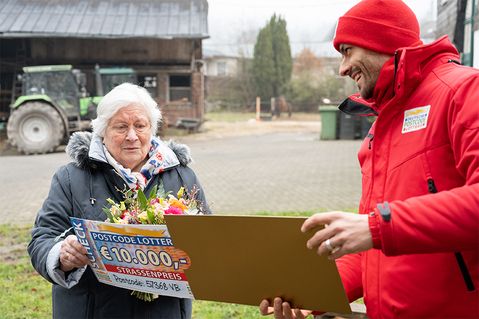 Giuliano erkundigt sich, wie die 81-Jährige zu ihrem Los kam. Roswitha meint: "Was da im Fernsehen mal gezeigt wurde, wenn die Leute alle was gewonnen haben, hat man nur gedacht, wäre man auch mal dabei." Jetzt ist sie dabei – herzlich willkommen im Club der Postcode Glückspilze, liebe Roswitha und alles Gute zum Geburtstag!