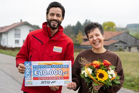 Wir feiern an diesem Samstag den dritten Straßenpreis der Oktober-Ziehung. Dieser geht nach Hohenfurch in den Postcode 86978 AF. Hier freuen sich zwei Glückspilze mit jeweils einem Los über insgesamt 20.000 Euro. Unser Team überrascht die beiden persönlich!