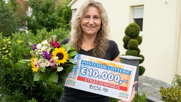 "Wow, toll, danke, klasse, schön! Ich freu mich! Super!" Aus Birgit sprudelt es nur so heraus, als sie den Scheck aus dem goldenen Umschlag zieht und sieht, dass sie 10.000 Euro gewinnt. Herzlichen Glückwunsch zum dritten Straßenpreis der Juli-Ziehung in den Postcode 90556 ME nach Seukendorf in Bayern.