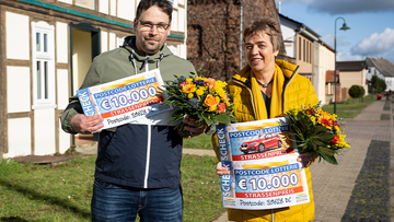 Der vierte Straßenpreis im Februar landet im Postcode 39628 DC in Bismark (Altmark). Hier jubeln Hannes und Heike über 10.000 Euro pro Los und einer der beiden Glückspilze freut sich zusätzlich über einen nagelneuen BMW 1er. Unser Team hat sich persönlich auf den Weg gemacht, um die beiden überraschen.