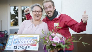 "Wow. Unglaublich. Unfassbar!" - Karin aus Wachtberg konnte ihr Glück kaum fassen, nachdem sie am Wochenende von der Deutschen Postcode Lotterie an der Haustür überrascht worden war. Der Grund: Ihr Postcode 53343 GF wurde für den vierten Straßenpreis im November gezogen: "10.000 Euro - was für eine Summe!"