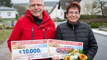 Mit strahlenden Gesichtern empfangen Stefan und seine Frau Iris unser Team im schneebedeckten Neuental. Das Grinsen wird noch breiter, als der Gewinner zwei Schecks aus den goldenen Umschlägen zieht – denn mit seinem Los räumt er großartige 10.000 Euro und einen BMW 1er ab. Felix fragt nach den ersten Gedanken: "Ich hatte ziemliches Herzklopfen und die Nullen hörten gar nicht mehr auf", antwortet der 56-Jährige lachend.