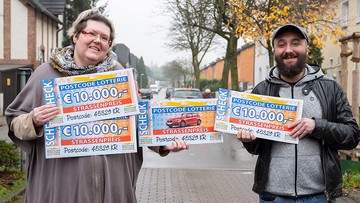 Für Ute wird vier Wochen vor Weihnachten ein echter Traum wahr – sie gewinnt mit zwei Losen 20.000 Euro und einen BMW 1er! Ihr Nachbar Barnabas freut sich mit ihr. Er jubelt mit einem Los über 10.000 Euro. Der Postcode 45329 KR Essen sichert den beiden den vierten Straßenpreis der November-Ziehung.