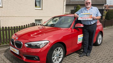Unser motorisierter Straßenpreis geht diesen Monat nach Osnabrück in den Postcode 49078 AU. Hier trifft das Glück Klaus gleich doppelt, denn er gewinnt mit seinem Los einen BMW 1er und 10.000 Euro!