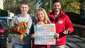 „Ich habe noch nie etwas gewonnen“, staunt die glückliche Gewinnerin Natascha in Mainaschaff mit dem Postcode 63814 FK. Die 24-Jährige hat mit ihren zwei Losen gleich doppelt Glück beim vierten Straßenpreis im Oktober – das bedeutet 20.000 Euro! Und Natascha jubelt für zwei! Denn sie erwartet im Januar 2018 ihr erstes Baby und plant, bald ihren Freund Michael zu heiraten. Wann könnte so ein Gewinn passender kommen als genau jetzt?