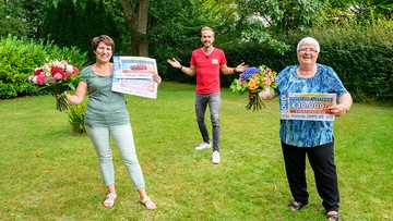 Wir feiern den vierten Straßenpreis der August-Ziehung und gratulieren Helga und Jana aus Jörl in Schleswig-Holstein. Der Postcode 24992 BM beschert den beiden jeweils 10.000 Euro! Außerdem sichert Janas Los-Nummer ihr einen nagelneuen BMW 1er zusätzlich. Die beiden Nachbarinnen können ihr Glück kaum fassen.