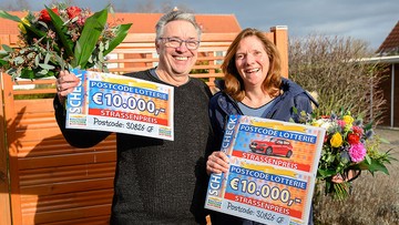 "Wir haben zwei Lose – ein Ehepaar – jeder hat ein Los, aber auf ein Los gibt es zusätzlich noch den BMW 1er", erklärt Felix bei seiner Ankunft im Postcode 30826 GF – unterwegs zur Tür der Glückspilze. Beim vierten Straßenpreis der Januar-Ziehung jubeln Frank und Gabriele aus Garbsen in Niedersachsen über insgesamt 20.000 Euro und ein neues Auto.