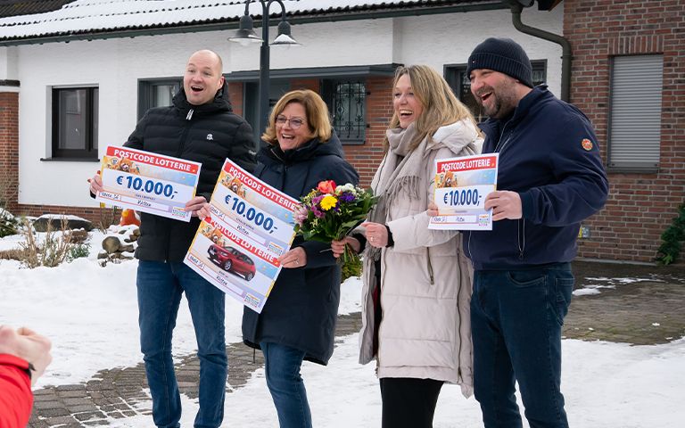 Alle Gewinner werden von uns per E-Mail oder per Post benachrichtigt. Wenn Ihr Postcode beim Monatsgewinn oder beim Straßenpreis Glück hatte, informieren wir Sie zusätzlich telefonisch.