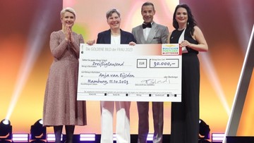 Für ihr leidenschaftliches Engagement wurde Anja van Eijsden bei der diesjährigen Verleihung der GOLDENEN BILD der FRAU den mit 30.000 Euro dotierten Leserinnen- und Leserpreis ausgezeichnet, der dank der Teilnehmenden der Deutschen Postcode Lotterie bereits zum vierten Mal gefördert werden konnte.